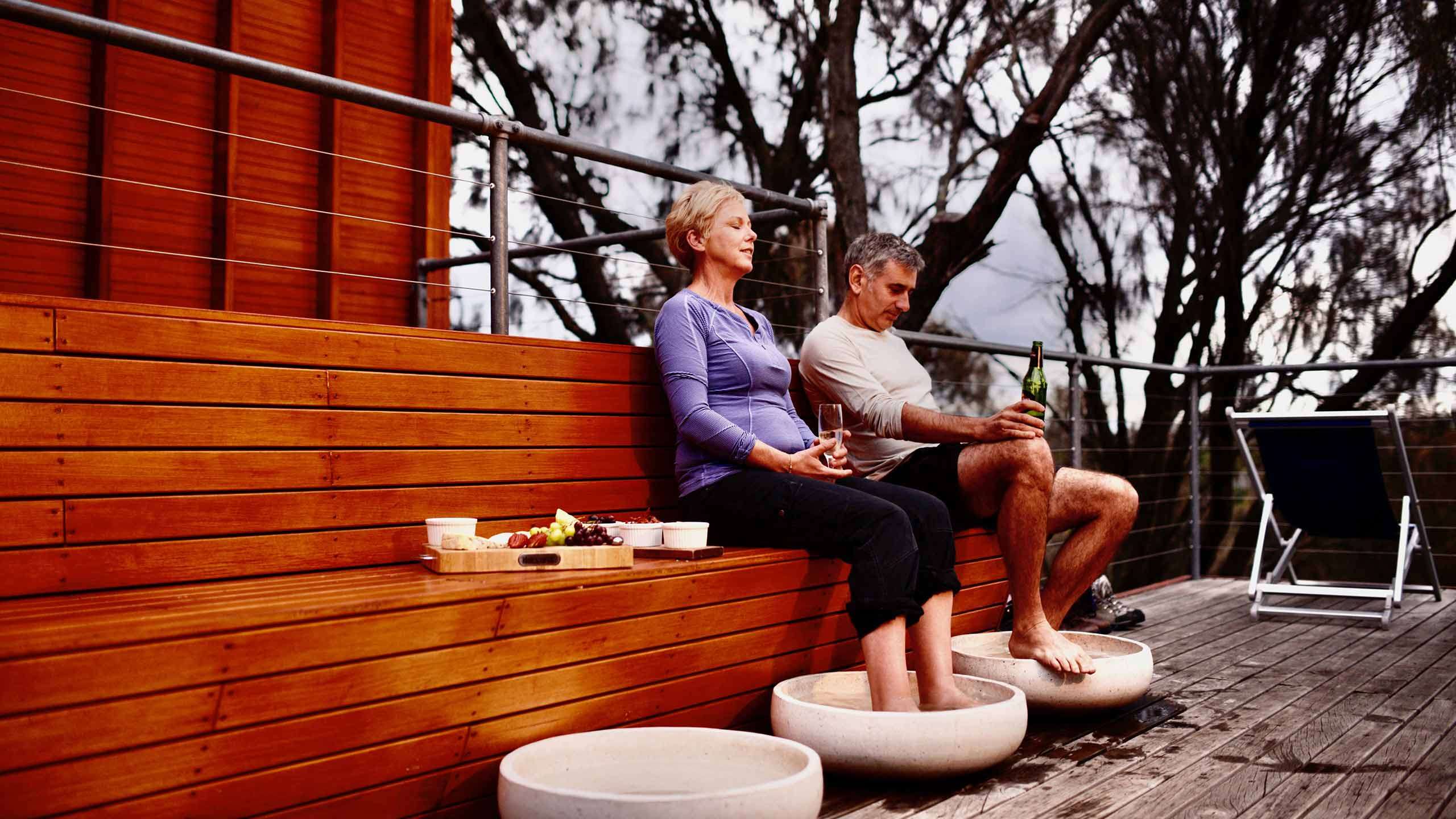 As the afternoon light softens, a rejuvenating foot spa and afternoon tea await your arrival. For those seeking deeper indulgence, a selection of luxurious spa treatments is available; we encourage pre-booking to secure your place in the outdoor tub or for a few hours of blissful pampering. As evening descends, you may retreat to the quiet elegance of the library or allow your hosts to bring a cool drink to you on the deck. Dinner is a grand Tasmanian long-table affair, a symphony of the island’s finest produce perfectly paired with exquisite local wines and beers. |