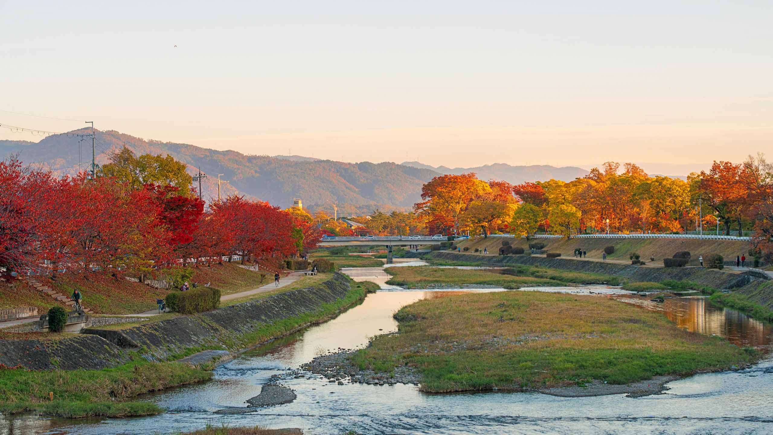 Approx. 52 km (32 miles), 4-6 hours cycling Wake to fresh coffee before heading out on your saddle. As you leave the city’s buzz, the road runs beautifully, leading you along a dedicated bike path where you can glide along the river levee, a light breeze accompanying your relaxed ride. Soon, the scenery opens up to whispering bamboo groves, cornfields rolling in the distance, and emerald-green tea plantations lining the route. You may also want to keep an eye out for cyclist-friendly cafés along the way for a second coffee, or even a quick snack. About half way to Nara, you may want to pause at a scenic viewing tower, complete with spotless bathrooms and enough space to stretch stiff muscles. Continue to Nara and spend the rest of the day as you please. You have the option of taking a stroll through Nara Park to meet the famously friendly (and very photogenic) local deer. In Shinto tradition, the sika deer are considered messengers of the gods (sacred envoys linked to Kasuga Taisha Shrine's founding legend), and you will often see them bowing their heads for treats or simply roaming freely around the park. |