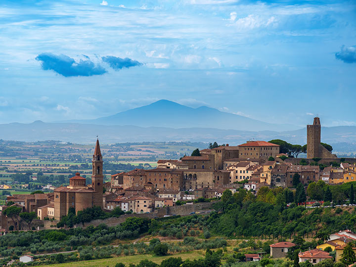 Approx. 69km (43 miles), 4 hours biking, Elevation gain: 1040m (3412ft) Our journey continues through the rolling countryside of Emilia-Romagna, where today's ride presents a rewarding challenge for both road cyclists and E-bike riders alike. You’ll conquer two scenic climbs, each bend in the road revealing even more breathtaking views over the verdant Tuscan hills. As with all our cycling trips in Italy, the support van is always discreetly nearby, ready to offer a lift or a refreshing snack, ensuring your day is as comfortable as it is exhilarating. We then arrive in the historic city of Arezzo, an Etruscan and Roman jewel that holds one of Italy’s most beautiful public squares, the Piazza Grande. This magnificent, uniquely sloping piazza is framed by medieval towers and the elegant loggia designed by Giorgio Vasari, creating a captivating scene where history comes alive. In true Italian fashion, our evening concludes with a well-earned dinner at a lively pizzeria, perfectly situated beneath the warm glow of a centuries-old church tower. Nestled within the heart of Arezzo's ancient walls, you’ll stay at Graziella Patio Hotel. Unwind in the exclusive wellness centre with its Turkish bath and salt cave, before ascending to the rooftop terrace for an aperitivo, surrounded by breathtaking panoramic views of the city's timeless architecture. |