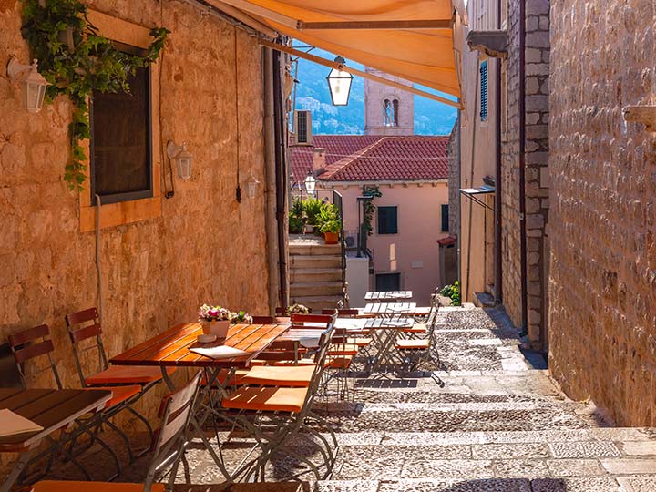 Today, we leave Korčula behind, boarding a ferry (about 30 minutes) to the Pelješac Peninsula, known for its strong red wines, especially Dingač and Plavac Mali. Our arrival here brings us to a local vineyard where we get to taste and try a few wines, well paired with simple local snacks like pršut (prosciutto), cheese, olives, or fresh bread. This region takes a lot into account when crafting its signature reds; unique factors like steep, south-facing slopes (often 45° or more), intense "triple insolation" from direct sun, sea reflections, and heat-radiating white pebbles in the soil, plus karst limestone bedrock rich in potassium. These extreme conditions help the Plavac Mali grape thrive, producing full-flavored wine with higher alcohol (often 13–17%). The taste is even better, with dark fruits like blackberry and plum jam, along with hints of dried figs, carob, spices, pepper, and sometimes even a bit of leather or earthy, mineral notes. We continue to Dubrovnik (around two hours), following the vineyard visit and tasting. Later in the afternoon, set out on a guided walk through the UNESCO-listed Old Town, with lots of history to uncover. Our path passes along the smooth limestone main street, where you can see old palaces from the Renaissance period, along with the strong city walls that once protected the old Republic of Ragusa. |