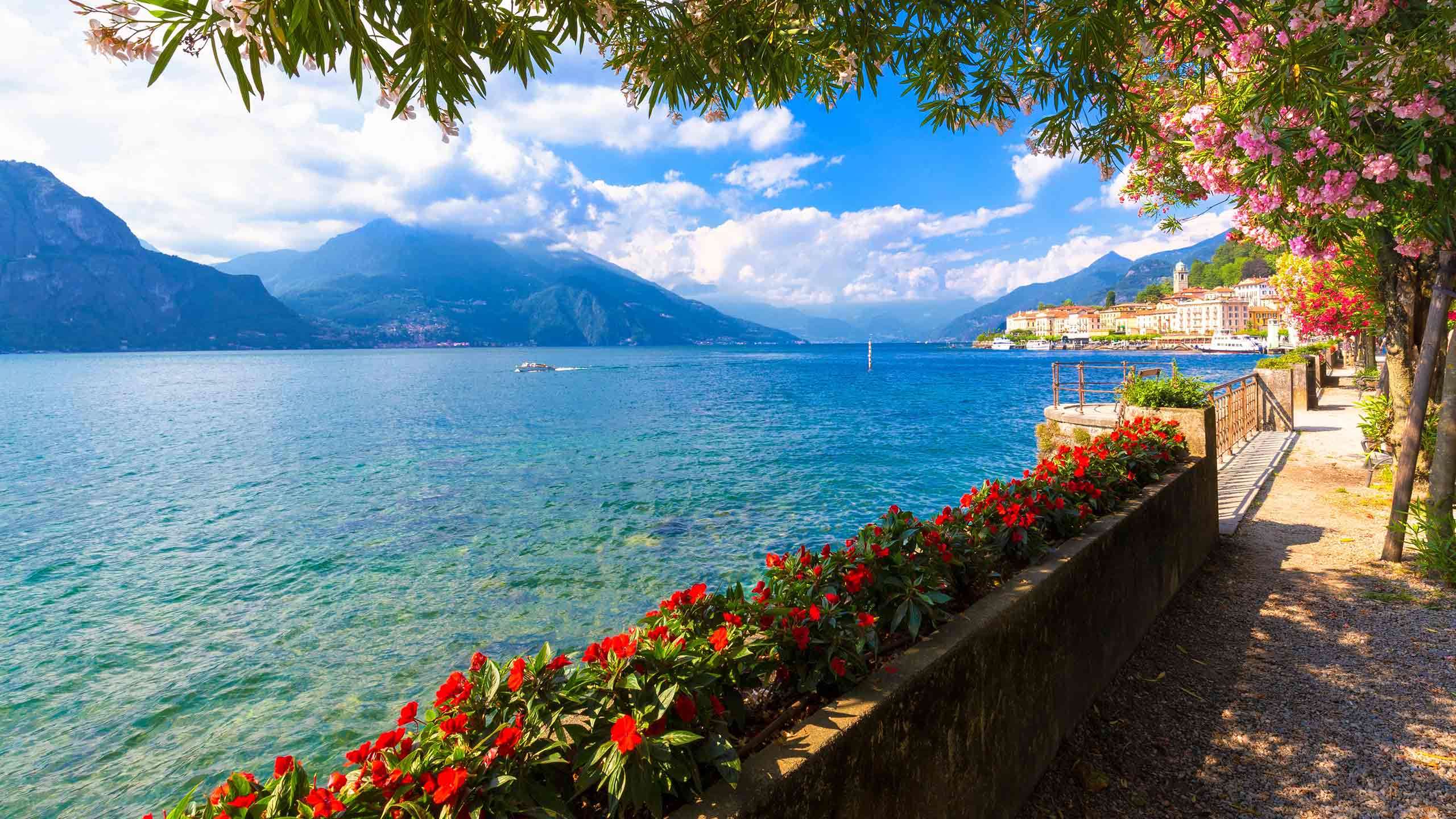 April - October (best weather for cycling). The Northern Lakes of Italy—Lake Como, Lake Garda, and Lake Iseo—boast a delightful climate that enhances their allure as year-round destinations. Summers are warm and inviting, with average temperatures ranging from 20°C to 35°C (68°F to 95°F), making it perfect for outdoor activities like cycling, boating, and exploring the picturesque surroundings. The lakes benefit from a temperate microclimate, influenced by their vast water surfaces, which helps moderate extreme temperatures. This creates a pleasant atmosphere, with cool breezes providing relief even on the hottest days. Winters are mild, particularly along the lakeshores, where the climate remains relatively gentle compared to the surrounding regions. Spring and autumn bring a mix of sunny days and occasional rain, with vibrant blooms and colourful foliage.