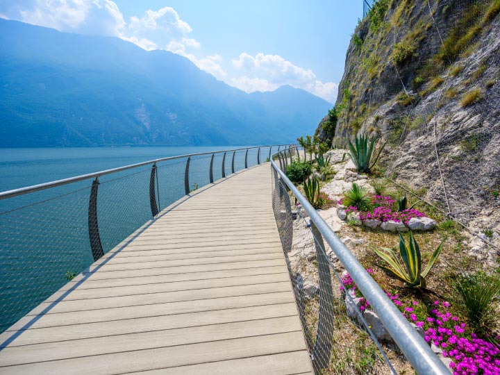 Approx. 56km (35 miles), 5 hours biking, Elevation gain: 290m (951ft) After a leisurely breakfast, we set off for a scenic day of exploration, heading towards the charming town of Bardolino along the picturesque coast road. On our journey, we pass by the stunning peninsula of Sirmione, known for its thermal springs, ancient Roman ruins, and the majestic Scaliger Castle—an iconic sight that seems to rise straight from the waters of Lake Garda. Today's ride is designed to be mostly flat, offering a relaxed pace as we cycle through some of the most beautiful areas along the eastern side of Lake Garda. Along the way, we’ll visit Peschiera del Garda, a UNESCO World Heritage site with its impressive fortress walls and canals. From there, we’ll continue to the enchanting village of Borghetto, a postcard-perfect spot famous for its medieval charm, watermills, and iconic Visconteo Bridge. Here, time seems to slow down, and it’s the perfect place to soak in the serene atmosphere. We’ll make a stop for a cappuccino, where our team will happily share tips on how to enjoy coffee like a true Italian. Continuing our ride, we’ll follow the peaceful course of the Mincio River, enjoying its tranquil surroundings as we make our way back toward the hotel. On our return, we’ll stop for lunch in Sirmione, giving you time to explore its narrow-cobbled streets, perhaps indulge in some gelato, or simply admire the breathtaking views across the lake. In the evening, you’ll be transferred to the Marina in Desenzano, where the lively waterfront offers a variety of restaurants and cafés. Choose a spot to dine while taking in the sunset over the lake—a perfect end to a day filled with exploration and the beauty of Lake Garda. |