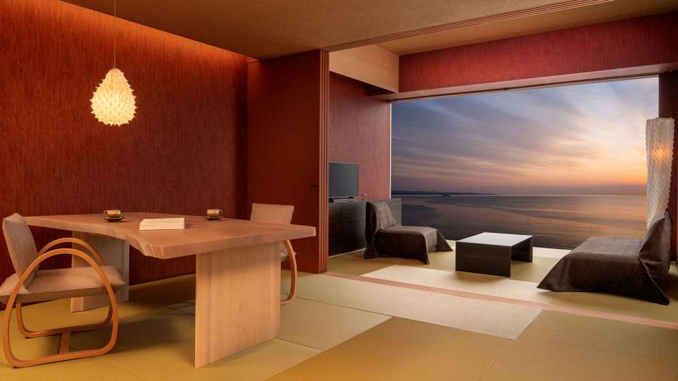 closeEncounter idyllic and oceanic blissfulness at KAI Beppu, an onsen ryokan situated in Oita Prefecture, at the most trenchant brink of Japan’s Island city, Kyushu, overlooking Beppu Bay. Whether you are on vacation, or seeking an escape from the barbarous, KAI Beppu presents reaches of mind-lulling, utopian pleasure as you soak-up coastal views during your sojourn. Bordered on the east by the pacific Beppu Bay, and on the west by the Beppu mainland, the sanctuary is fractionated into 70 guest rooms with plushily vibrant aesthetics. These Japanese-style rooms are fastidiously furnished, some featuring outdoor baths (Onsen), and all possessing expansive windows framing the Beppu Bay in a picturesque manner. Have your gourmand alter-ego pacified as you relish flavoursome, Kaiseki consumables during breakfast, with kaiseki peaking at dinner with finely crafted bamboo ware and feature an assortment of seafood seasoned with a plethora of condiments. Luxuriate in affluence, choosing solitariness, as you relax and dine at the semi-private rooms. Watch Kai Beppu come alive during nocturnal hours, experiencing the wonder of the Toji Jug Band. Augment your mental acuity while playing the nostalgic Smartball in the Lab. Affiliate with Beppu culture, indulging in therapeutic hand and foot baths as you relish coastal delights. Rewrite your life’s experiences at this resort.