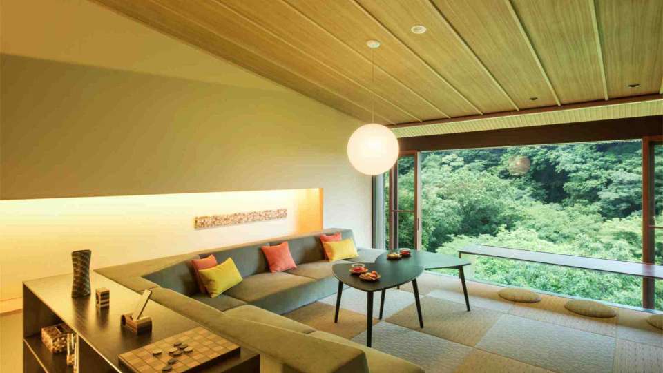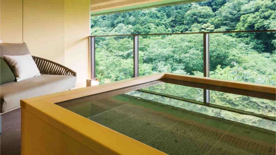 closeRelish a memorably remarkable sabbatical sojourn in one of Nippon’s glamorous hot springs ensconced in the town of Hakone, Kanagawa Prefecture. Roosted about 90 km southwest of Tokyo, the Hoshino Resort Kai Hakone is a sanctum graciously muddling time-transcending designs, expressed in intricately fashioned, historical crafts, and the contemporary with satisfactory awe. The resort, enveloped by a superfluity of diverse plant species creating an exuberant forest, is balkanized into 32 guest rooms bestowed with the most recent of furnishings, with interior décors, albeit culturally featuring Hakone parquetry. All rooms provide mind-capturing river views and are equipped with therapeutic, body-rejuvenating, lined-with-ancient-hinoki-cypress, thermal baths sustained by a 1,200- year-old onsen. Dine intrepidly consuming body-nourishing kaiseki delicacies from breakfast to dinner. Revisit history at this sanctuary as you learn about the intriguing, cultural wonder of Hakone parquetry. Get pleasantly pampered with therapeutic massages by nationally certified staff at the spa. With the resort as a base, venture into the environs discovering new fascinations at local attractions such as the Hakone Shrine, Lake Ashi, the much-acclaimed, iconic Mount Fuji and so much more than your imagination beckoned.