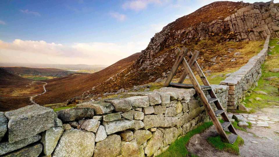 Your unforgettable adventure begins in Dublin, after which we journey to the scenic harbour village of Howth. Explore a 19th-century castle and traverse the ruins of Killevy Old Churches. Discover the Ring of Gullion, a designated Area of Outstanding Natural Beauty. Encounter a 5,000-year-old passage tomb and savour sweeping views of Dublin Bay and Wicklow. Hike with the spectacular Slieve Foye as a backdrop, and climb the highest pass in the Mountains of Mourne. Journey to Bloody Bridge, admiring castles and breathtaking views of Slieve Commedagh, the second-highest mountain in the range. Trek along the castle-studded shore of Strangford Lough and behold where the Titanic sailed from. Explore the North Down Coastal Trail and pause at Grey Fort Point, a battery used during WWI. Learn how bagpipes found their place in Northern Irish culture. Enjoy a Belfast guided tour and learn about the city’s fascinating history and architecture before saying your goodbyes and ending the trip.