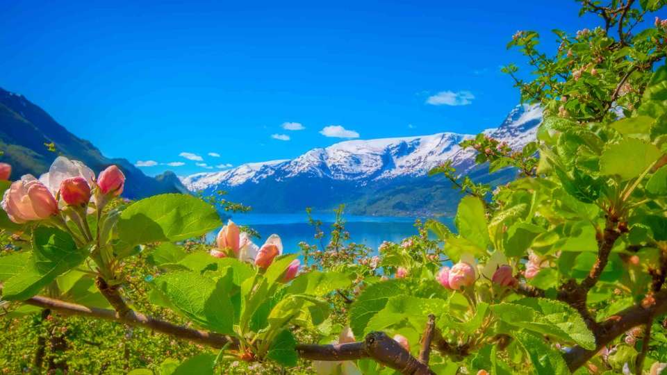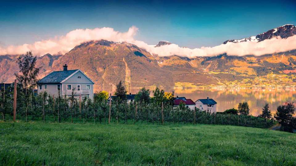 Your journey begins in the quaint town of Voss where you will be treated with a delightful luncheon at a Finnesloftet, enviable views of Lake Vangsvatnet, and cultural magnificence of the open air Folkemuseum. Take a bike ride to the historic pass at Skjervsfossen falls that is sheltered with lush trees. Wind through lovely fruit orchards en route to the plateau above Ullensvang & hike through a peaceful valley contrasted by thundering waterfalls. Catch your breath at the ancient farm of Løo på Seimstunet to unwind with a well-deserved picnic soiree. Grab a paddle, hop in a kayak to experience Norway's beauty from a different perspective and explore the fjord's sapphire waters, soaking in views of the Rosendal Alps. Witness the cascades galore in the vicinity of the Opo River which can be followed by an exciting climb to the Monk Steps rendering awe-inspiring views of the Hardangervidda and Folgefonna National Park. Brave the waters as you kayak from Rosendal and experience the magic of Alps before landing on Kalven Island. Enjoy a mini voyage to Våge on Tysnesøy, a forest island that nestles a bewitching mountain in its center. Humor yourself with a bike ride while soaking in the heavenly beauty of Våge, its neighboring islands, Rosendal Alps, and Folgefonna glacier. Cap off your spectacular adventure trying your luck with fishing in Bjørnafjorden before shuttling to Bergen.
